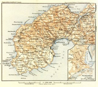 Old Map Of Cornwall England
